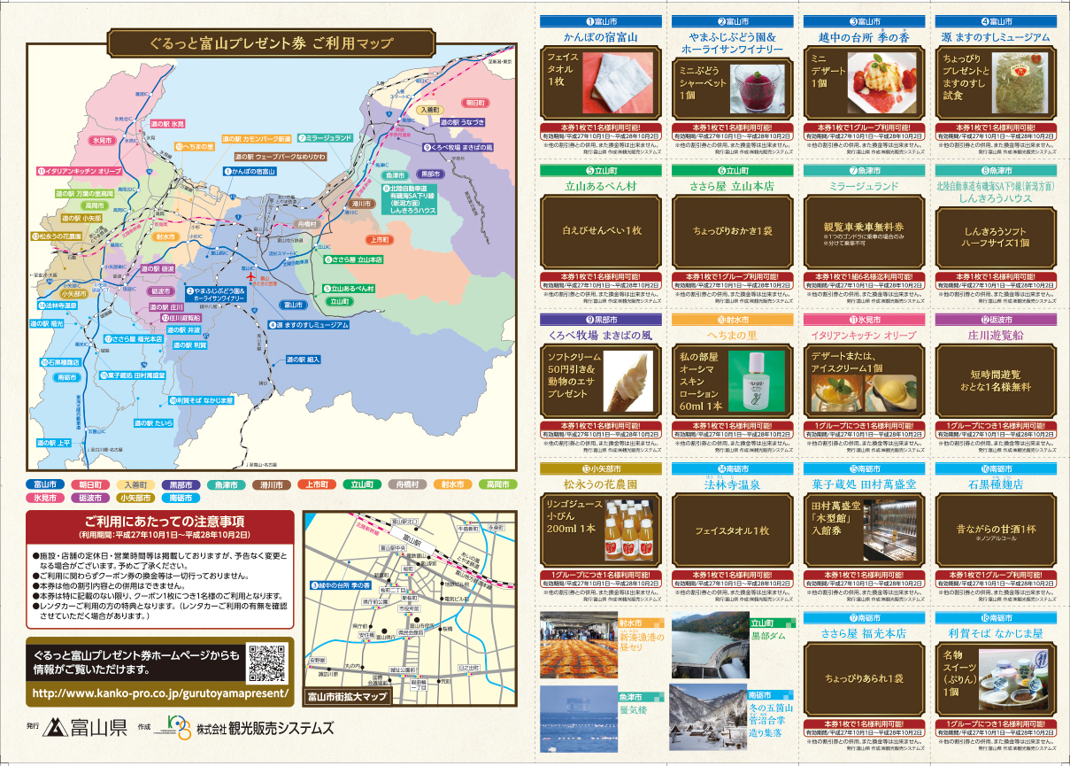 富山名産「ますの寿し」をはじめ、かまぼこ、ほたるいか、白えびや魚介の加工品、北陸の銘菓がずらりと並ぶお土産処がおすすめ!「恋人の聖地」認定の展望台からは、遠く能登半島までを一望。
